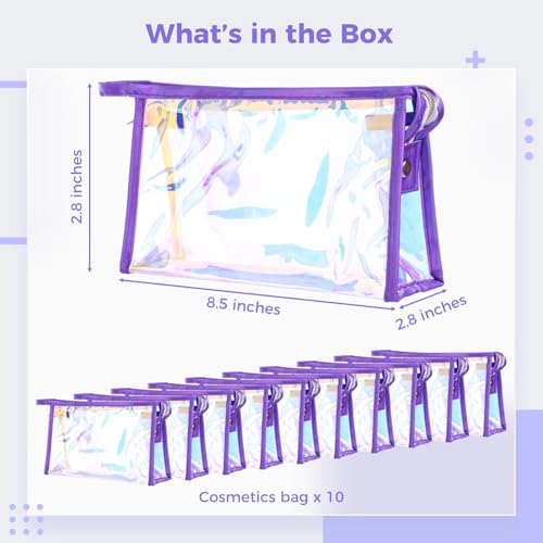 Schillernde Make-up-Taschen von Coetic, wasserdicht, tragbar, mit Reißverschluss, transparent, holografische Kulturbeutel, Junggesellinnenabschied, 10 Stück